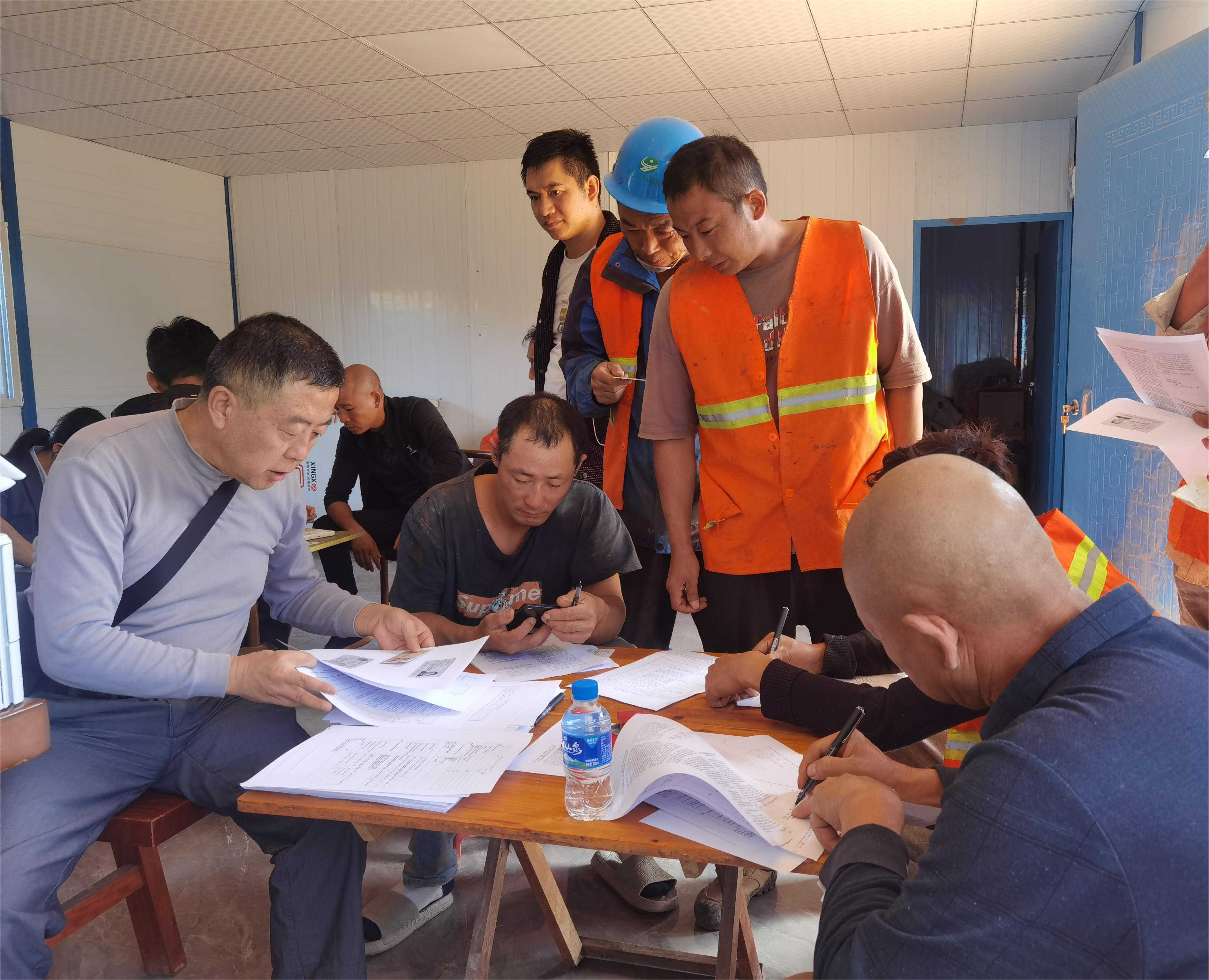 近日,為踐行“我為群眾辦實事”實踐活動,規范農民工工資發放流程、保障農民工合法權益,師丘一總包邀請到師宗縣農業銀行漾月支行工作人員共同前往項目一線,為進場農民工普及反詐防騙相關知識,提供現場開卡服務。